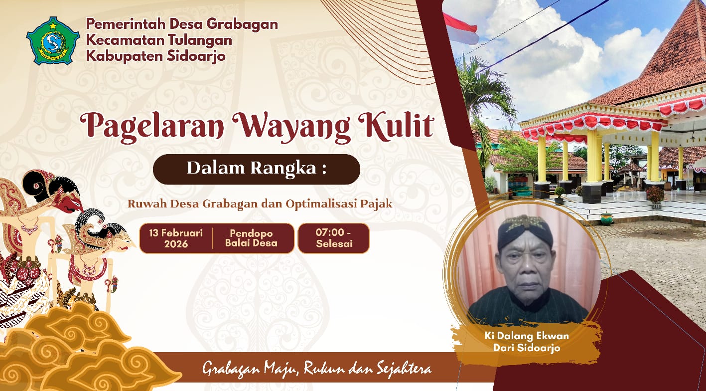 Desa Grabagan, yang terletak di Kecamatan Tulangan, Sidoarjo, Jawa Timur, telah menggelar pertunjukan wayang kulit semalam suntuk sebagai bagian dari acara Ruwat Desa Grabagan Kecamatan Tulangan Kabupaten Sidoarjo. Acara ini dihadiri oleh Plh Kepala Desa Grabagan, Lemabga Desa serta warga setempat. Acara tersebut terselenggarakan pada hari Jumat tanggal 13 Februari 2026